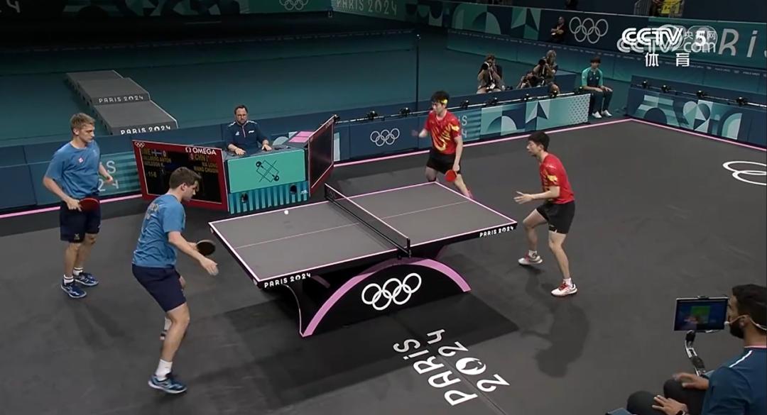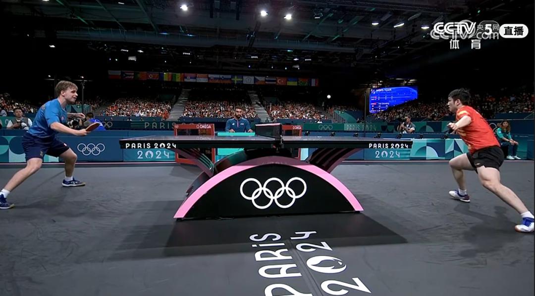在第一场比赛中,马龙和王楚钦与卡尔森和卡尔伯格对阵瑞典球员。