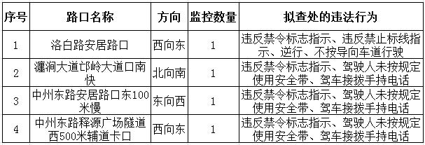 根据《中华人民共和国行政处罚法》、《中华人民共和国道路交通安全法》等法律法规,洛阳市公安局交警支队五大队为加强道路交通安全管理,预防和减少道路交通事故,在洛阳市公安局交警支队五大队增加了交通技术监控设备。公示时间为7日(2024年8月9日至2024年8月15日),2024年8月16日起,用于查处机动车违反不按导向车道行驶、违反禁止标线、逆行、违反禁令标志、驾驶员未按规定使用安全带、开车接拨手持电话的交通违法行为。