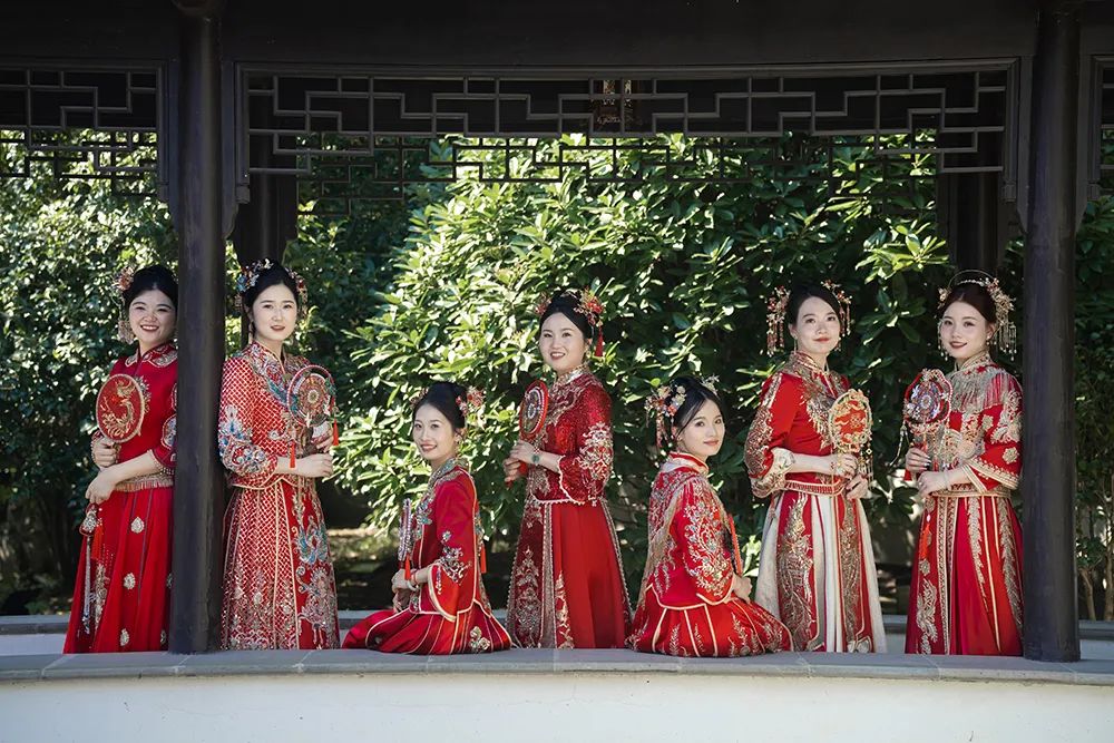 在战友和亲属中,七对新人