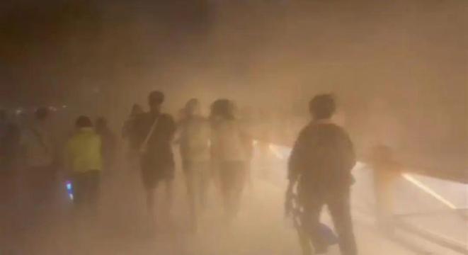 视频中,大家聚集在沙坡上唱歌合唱,然后风很大,灰尘席卷而来,现场可见度很低。工作人员有条不紊地离开,不要拥堵,确保安全。发布者随笔或评论道:“上一秒的音乐会,下一秒的风沙,充满了体验。”“我比别人有更多的旅行经历,但我赶上了风沙。”