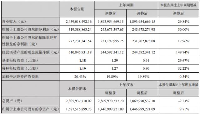 收入、归母净利润同比增长 30%