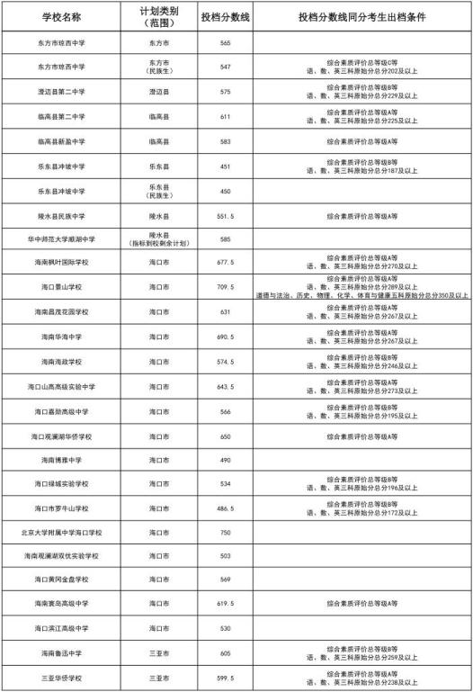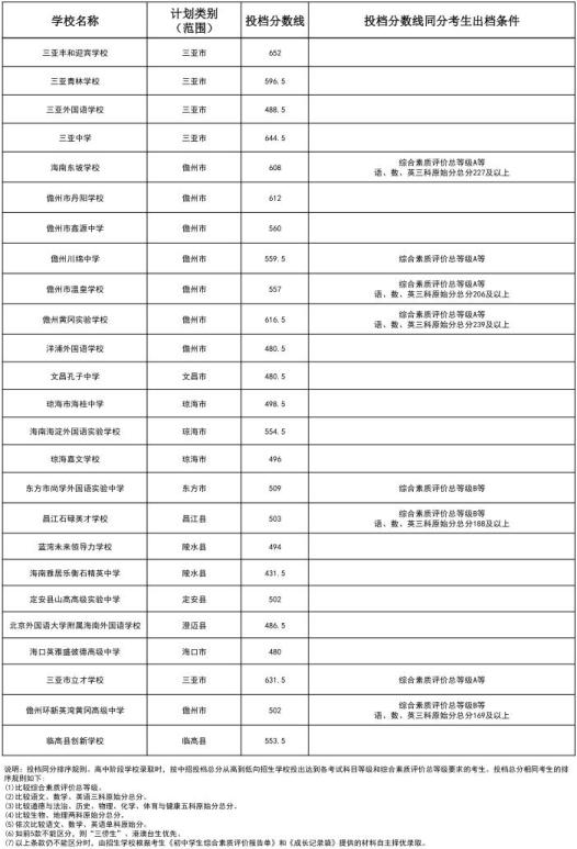 海南中招第三批投档分数线公布。