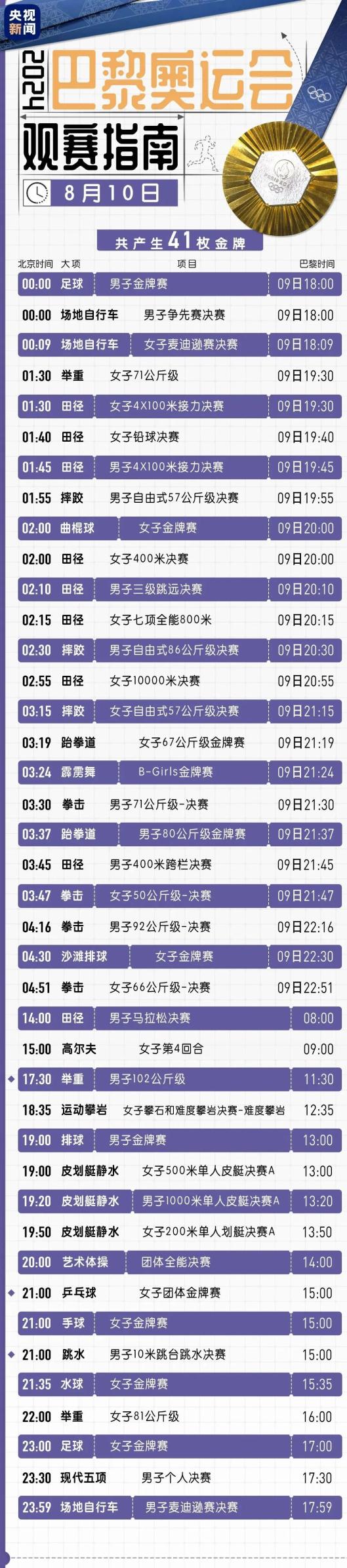 8月10日巴黎奥运会观赛指南