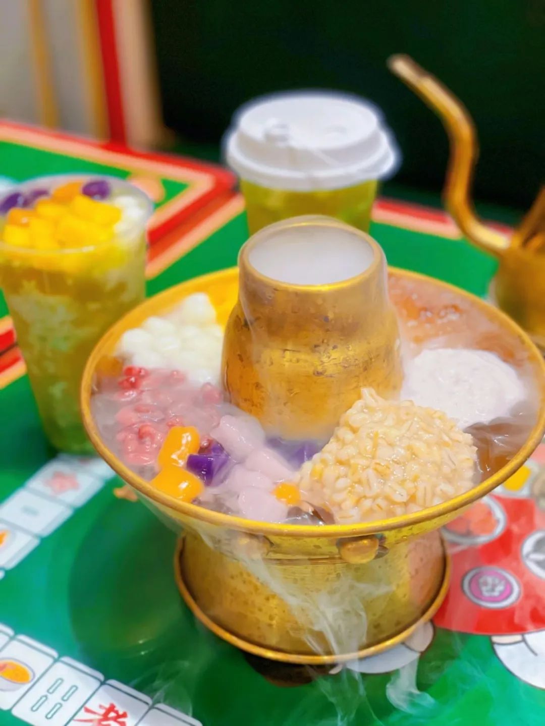 糖水捞火锅,整整8种甜品配料铺满铜锅