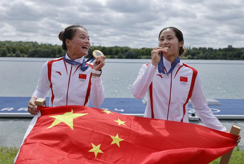东京奥运冠军徐诗晓和孙梦雅以1分52秒81的成绩刷新奥运会最佳成绩,在巴黎奥运会皮划艇静水项目女子双划艇500米决赛中成功卫冕。比赛结束后,他们走过混合区,脸上洋溢着轻松灿烂的笑容。当被问及拿到金牌后的第一个愿望是什么时,徐诗晓漫不经心地说:“假期!”旁边的孙梦雅高兴地欢呼:“假期!我想休息一下!”