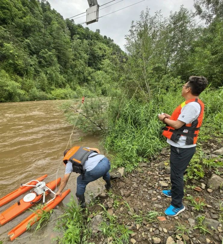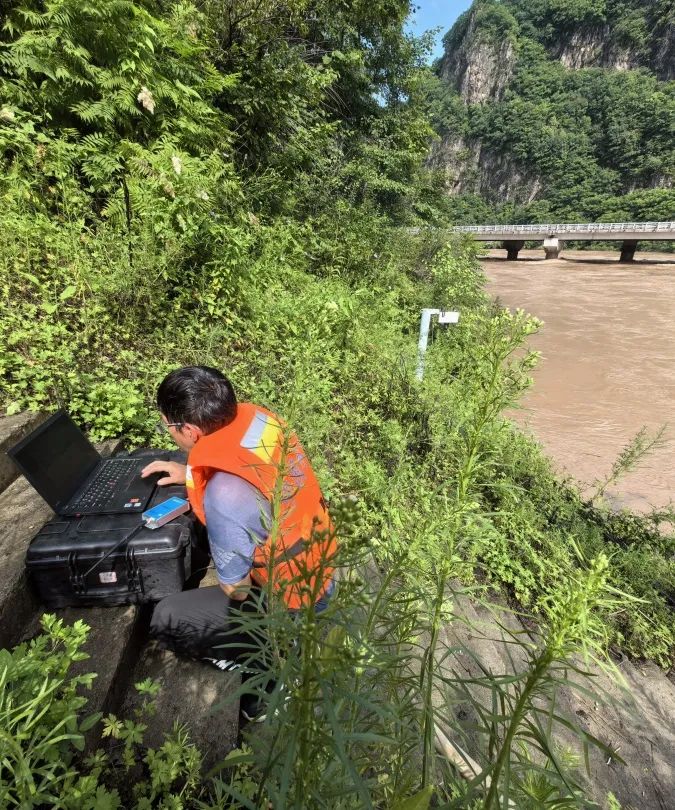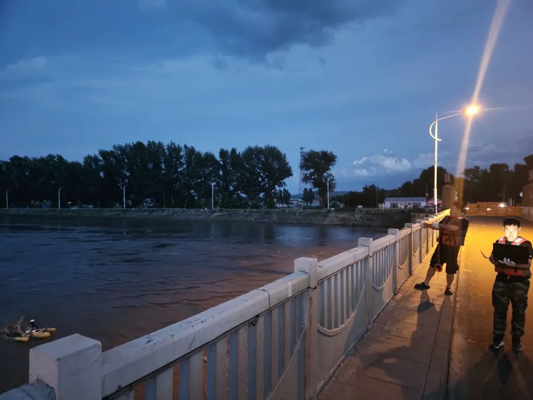 7月30日,牡丹江上游发生了至今最大洪水的记录。黑龙江宁安勘测队员工前往新设的宁安工农兵大桥截面,实时监控水位和流量数据,为保障下游城市防洪安全提供精准水文数据支持。拍摄:战雅楠