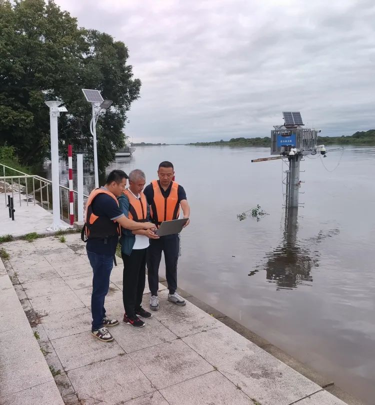 8月6日,乌苏里江主流水位超保,松辽委水文局干部职工抢测虎头站水位流量数据,分析判断水情信息,为防洪提供有力支撑。拍摄:荣佳伟