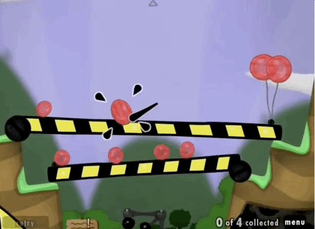 简而言之,你应该让他们离开深坑,翻过高坡,越过悬崖,躲过电锯,因为不同粘球的物理特性。。。顺利通向目的地。