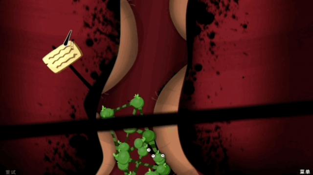 此外,游戏作者还参考了现实,给出了两种通关方案。一个是扔掉一些粘球,不管是带个别粘球直接通关。二是利用绿色常青藤粘球可拆卸的特点,用鼠标一个个捞出落在底部的粘球,然后通关。