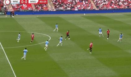 后半场换边决战滕哈格直接一口气进行。 4 个人调整;瓜迪奥拉换上了新援萨维奥;第一, 53 分钟,B 费高速前插进入禁区前兜射破门,但由于越位在先进球中无效; 75 几分钟后,曼联迅速反击,加纳乔右路横传曼城防线,拉什福德竟然把这个单刀球直接踢到了柱子上!