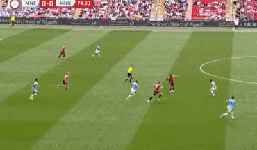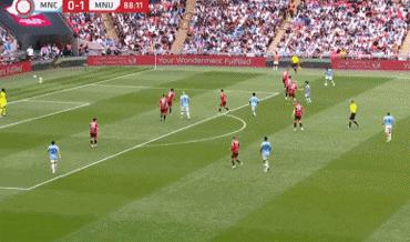 下半场易边再战,曼联获得了更大的整体优势和更多的进攻,曼城年轻的中场根本无法控制场面。B 费曾对破门进行了精彩的吊射,但是慢镜显示他在接球前越位,进球被处罚无效。