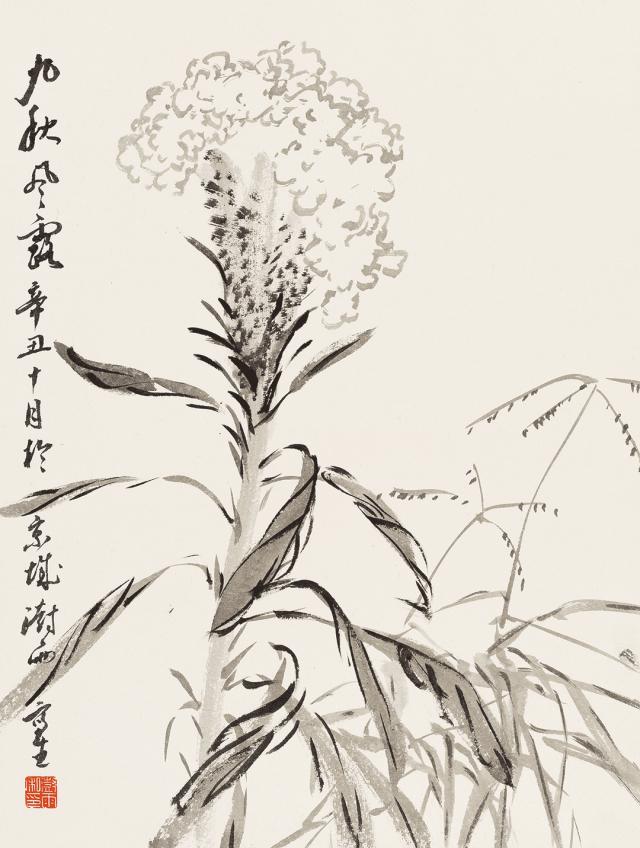 越来越简单,越来越简单,越来越精致,越来越醇厚,越来越有味道。阴雨写意花鸟的感人和当代价值在于它的创造性继承了写意笔墨的精髓,以笔墨为召唤结构,唤起了观众对自然和故乡的皈依和眷恋。就像南田的“摄情”理论一样,只有先让笔墨产生爱,才能让欣赏画家品尝到它的魅力,其中也有诗雨写意花鸟美学的真正味道。