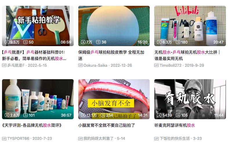 在国内视频网站上,有很多关于乒乓球拍胶水的评价和使用教程。