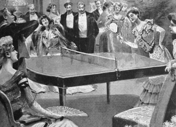 当时网球在欧洲很受欢迎,但是网球对场地和天气太挑剔了。一些聪明人把网球改成了缩小的室内版:场地变成了餐桌,网球变成了书。好吧,球拍,随便整个雪茄盒或木板就可以了。。