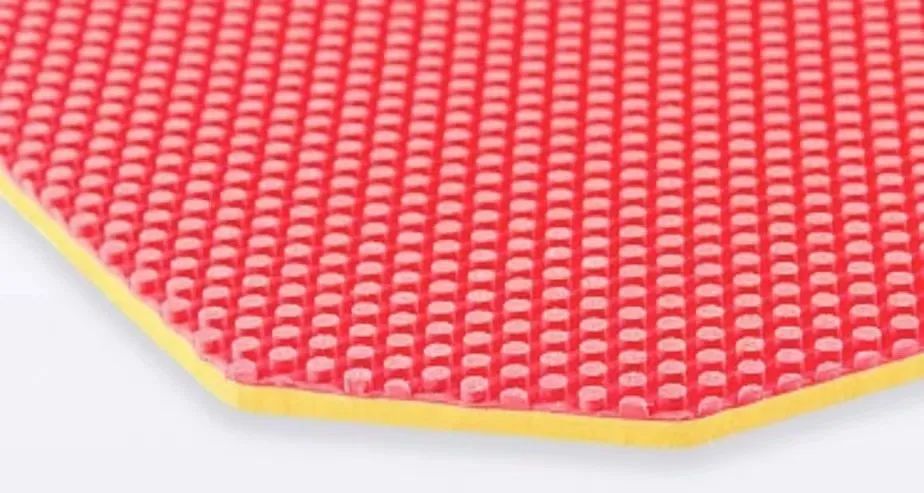 这种套胶,颗粒是朝里的,所以表面非常光滑,可以打出很强的旋转,也很容易控制,它是乒乓球界最常用的套胶之一,大多数顶级选手都使用它。