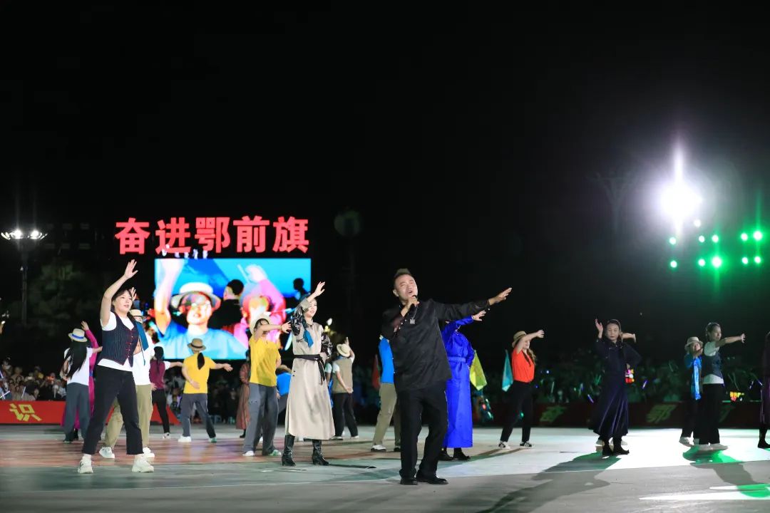 随后,整个演员和观众一起唱响了《幸福中国一起走》。永恒的旋律,委婉的告白,深情的情感,为近2万名观众呈现了一场丰富的视觉文化盛宴,让游客和群众深深感受到鄂托克前旗的多姿多彩。