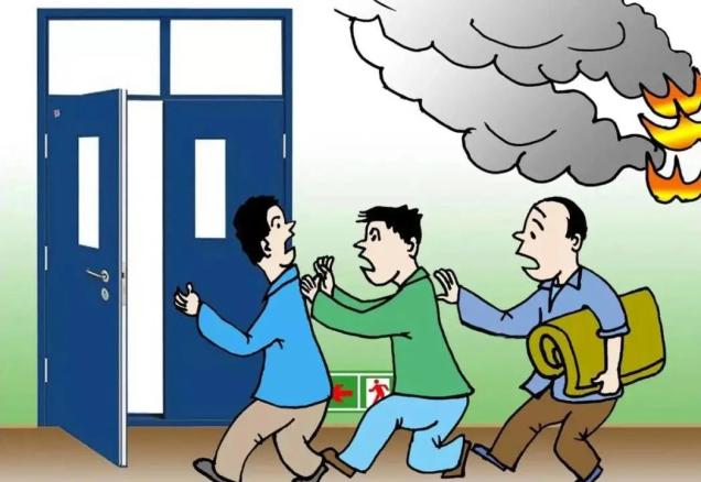 突然发生火灾时,首先要保持冷静,迅速判断逃离方向,尽早撤离危险之地。永远不要盲目跟随人流,互相拥堵,乱跑。