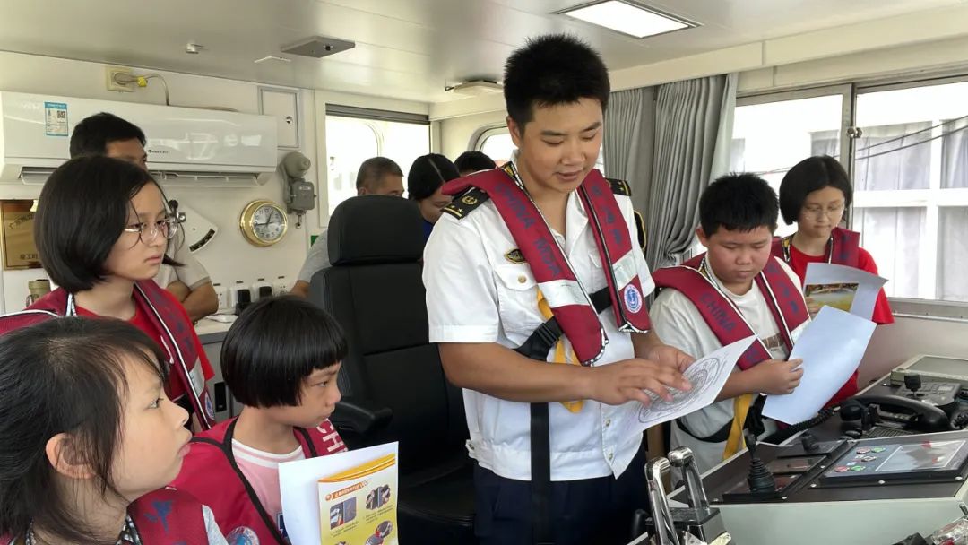在现场,海事老师带着孩子们互动体验了海上巡逻的魅力。通过实地考察,他们了解了船舶结构、船舶驾驶和航标,激发了青少年热爱海洋和航海的兴趣,为他们播下了一颗“航海梦”的种子,生动地介绍了船舶安全常识,有效提高了他们的水上出行安全理念。