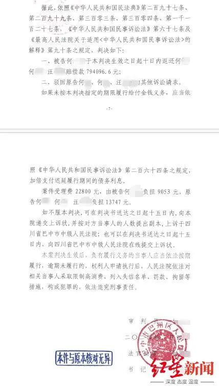 今年2月4日,巴州区人民法院作出判决,即何某福在判决生效后十日内退还小佳一家三口79.4万余元。“判决结果出来后,我们等了一个月,看看我叔叔会不会上诉。如果我们确定没有上诉,我们会申请强制执行,但我们从未立案。”小佳告诉记者,在此期间,他们还找到了叔叔,因为弟弟开学需要学费和生活费。“他们拖延了几天才付款。”