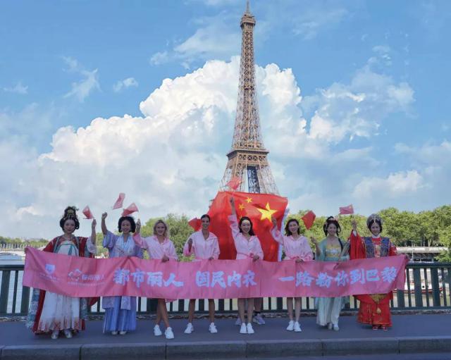 一辆装扮成粉红色的公交车,车身被花游队员意气风发的笑容所掩盖,印着都市丽人。 Logo,走过塞纳河、埃菲尔铁塔、凯旋门。与此同时,穿着美女粉软内衣的模特们也走过街头巷尾,巴黎燃情走秀,为城市美女品牌制造浪潮,展示国家品牌的信心,为中国花队加油,展示中国选手的信心。