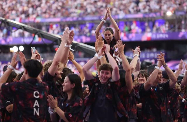 ↑在闭幕式上,加拿大体育代表团进场。新华社记者 曹灿 摄
