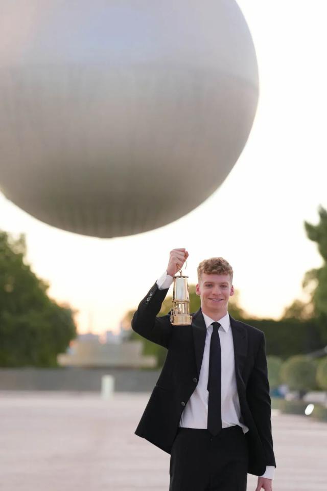 ↑马钱德,法国游泳运动员,收集圣火源。新华社记者 薛宇舸 摄