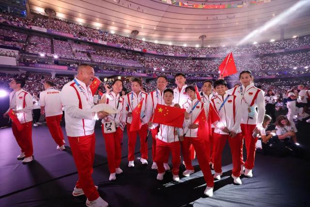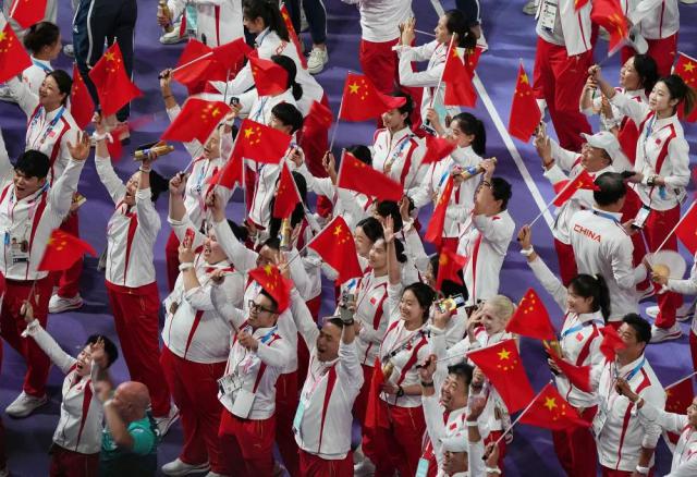 ↑在闭幕式上,中国体育代表团进场。新华社记者 郑焕松 摄