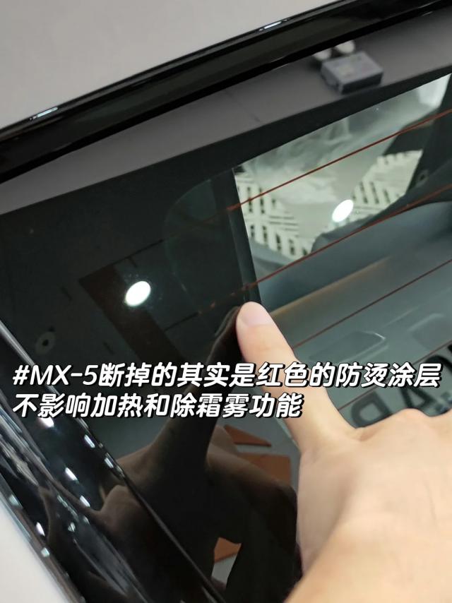 最近碰巧有一辆马自达 MX-5 出现了“红色加热丝部分断裂”的情况,以这辆车为例,我们来谈谈加热丝!