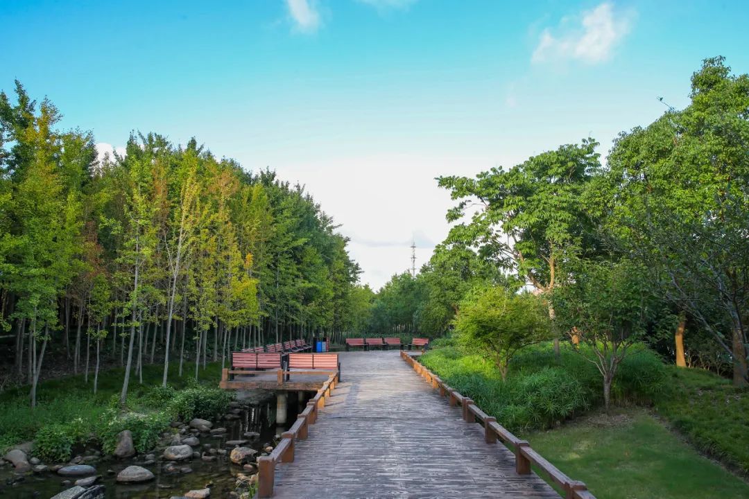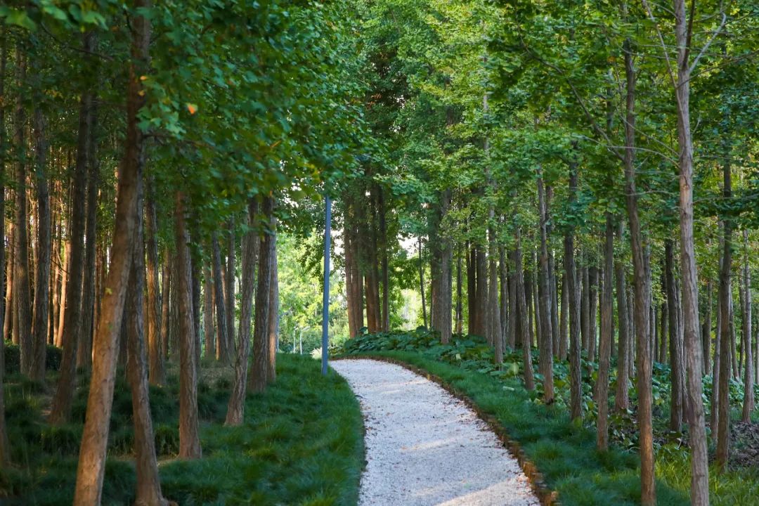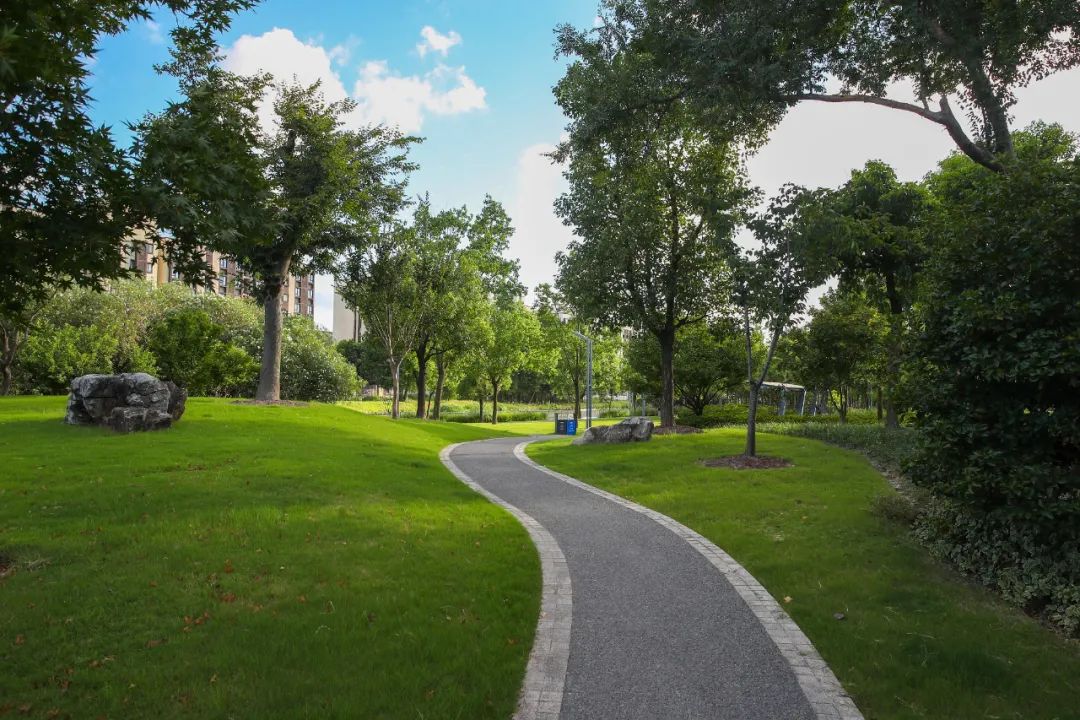文翔路附近有一片银杏林,森林里有一条铺着白石的小路。道路两旁植被茂盛,灌木丛错落有致,景色郁郁葱葱。整个公园小巧精致,是附近居民休闲、观光、散步的好地方。