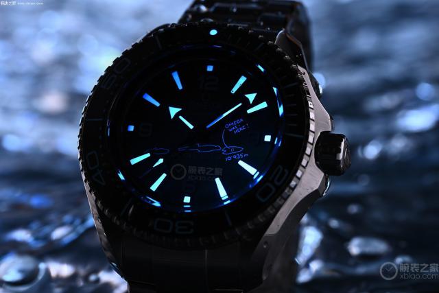 当我到达海马王时,我直接用声纳点画了一个海沟场景,从蓝色到黑色的漆面线条,模仿了极限海底的独特壮观景象,光线无法穿透。当佩戴者将紫外线照射在表盘上时,不仅可以显示马里亚纳海沟底部的西池、中池和东池的“挑战者”,还可以显示“更奇妙的是”OMEGA WAS HERE “这个词跃然眼前,指示着 Ultra Deep 原形表款于 2020 一年又一次下潜时创造的 10,935 米深潜世界纪录。在运动方面,手表配有一块欧米茄 8912 至臻天文台机芯,60 小时动储,这个机芯也是行业内较高的标准。同时 O-MEGASTEEL 表链还具有延伸设计,便于穿着潜水服。