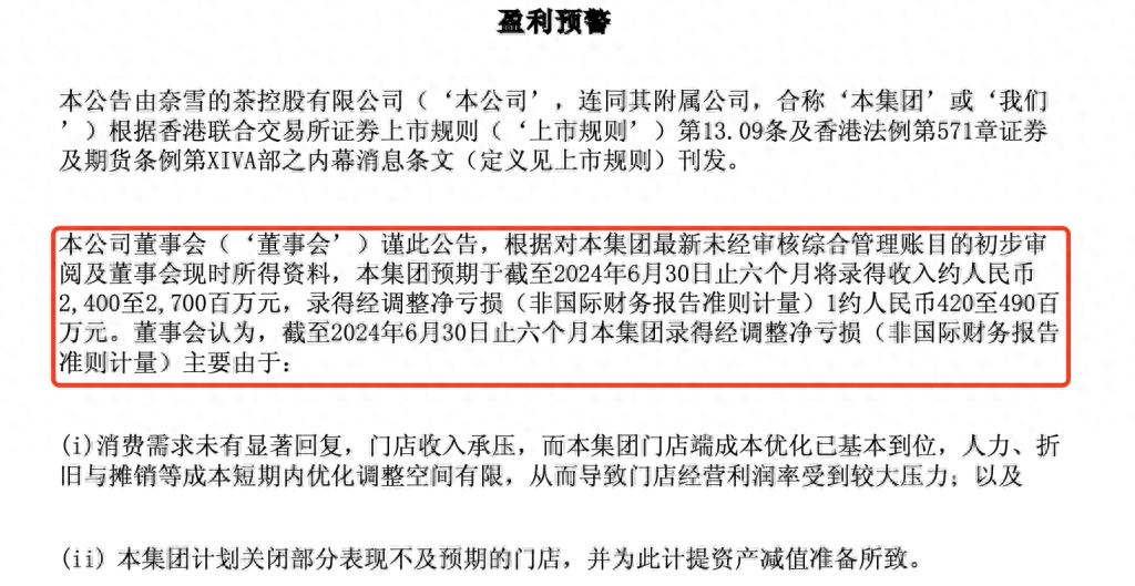 奈雪的茶也陷入了同样尴尬的命运。自2018年上市以来,该品牌已经五年没有盈利了。去年终于盈利了7000万,上半年又亏损了。根据奈雪茶叶利润预警的公告,预计2024年上半年利润约为24-27亿元,净亏损调整约为4.2-4.9亿元(非国际财务报告标准),利润同比下降近8倍。太可怕了。