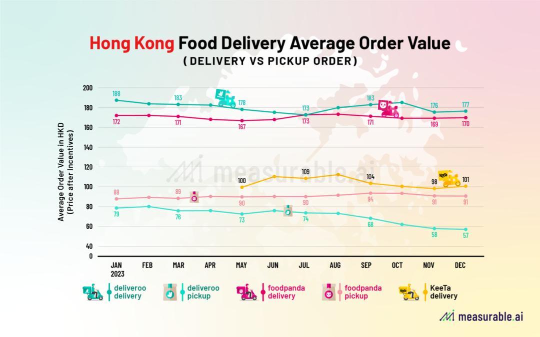 2023 年 5 月 22 日本,美团外卖品牌 KeeTa 在香港正式登陆。与内地的外卖服务不同,香港骑手的人工成本远高于内陆,甚至比餐费还贵的情况屡见不鲜。由于外卖费用过高,美团入住前,香港两大地方主流外卖平台 Foodpanda 和 Deliveroo 送货上门的平均客单价不低于 170 港元。外卖小哥极高的成本甚至催生了进店取餐的繁荣。