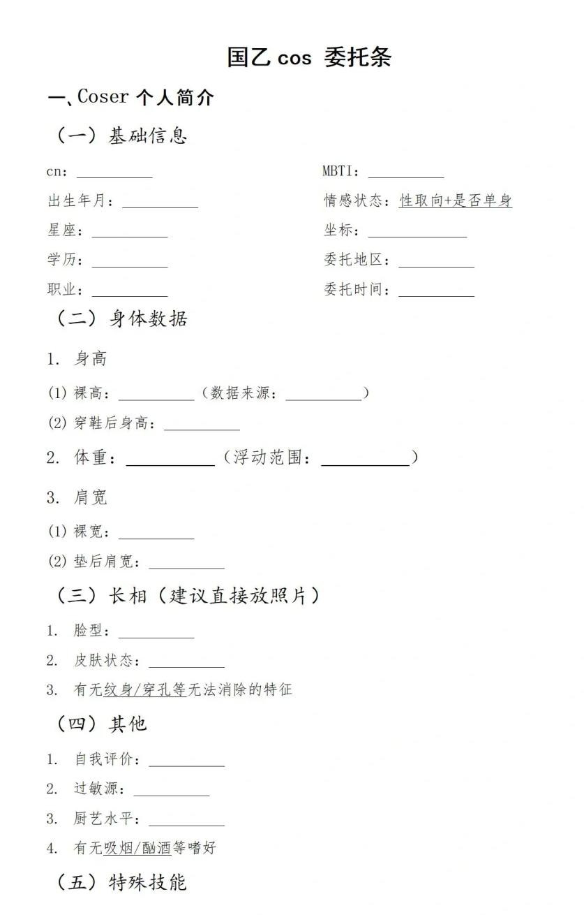 在圈内,coser简述了自己的情况和cos要求,称为“委托条”。(图/社交平台)