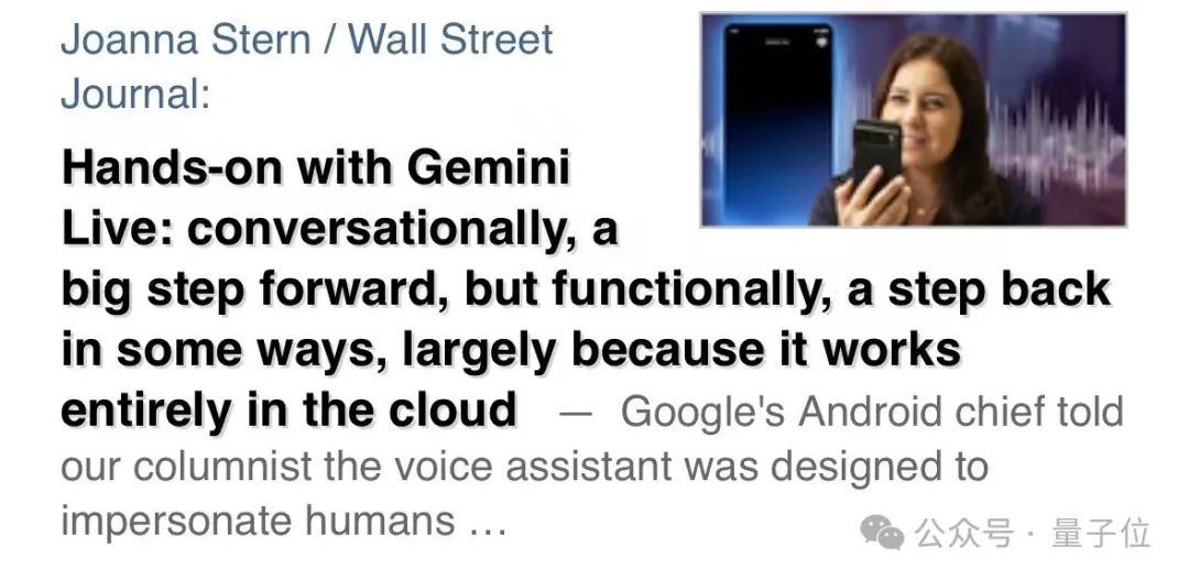 巧合的是,对于Gemini来说 Live在云端运行这一点,华尔街日报也给出了犀利的评价。——