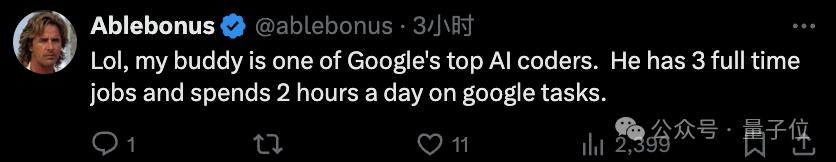 作为谷歌顶级AI程序员,我兄弟有三份全职工作,每天只在谷歌工作两个小时。