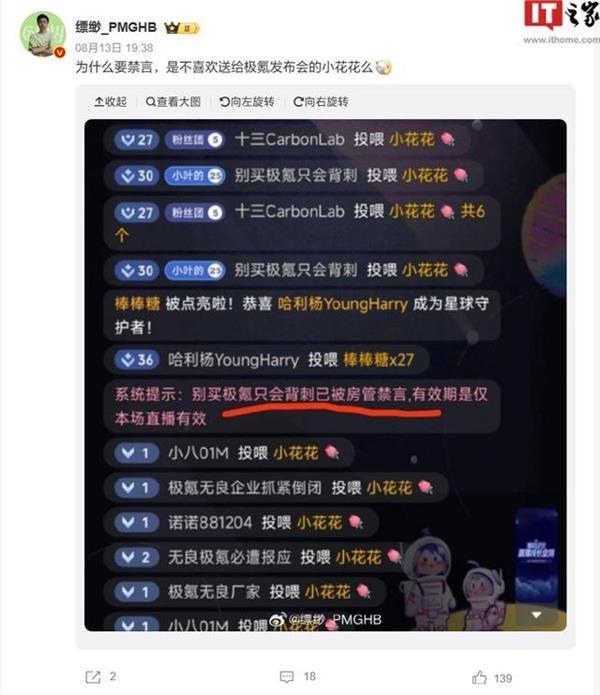 但是,这个决定也在社交平台上引起了不小的轰动。据IT世家等多家媒体报道,在昨晚的极氪新车发布会上,面对极氪001在短时间内不断迭代,不少网友在直播评论区表示不满,纷纷吐槽。面对这种意想不到的情况,极客官方采取了紧急措施,通过“全员禁言”关闭了直播评论,但用户的热情并没有因此而消失。然后他们继续在直播间“称霸屏幕”,通过改变昵称和赠送礼物来表达对极客决策的看法和情绪。