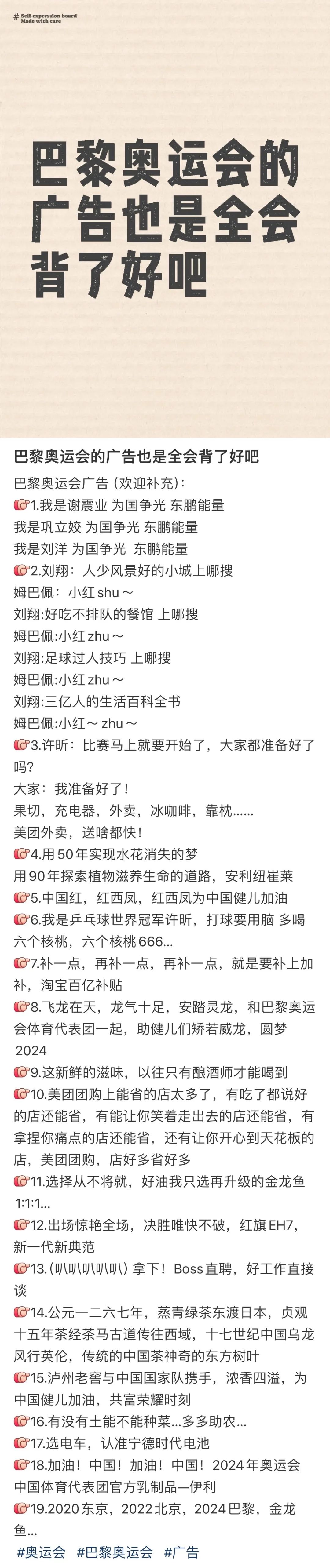 在巴黎期间,小红书网友总结了一组令人印象深刻的品牌广告:
