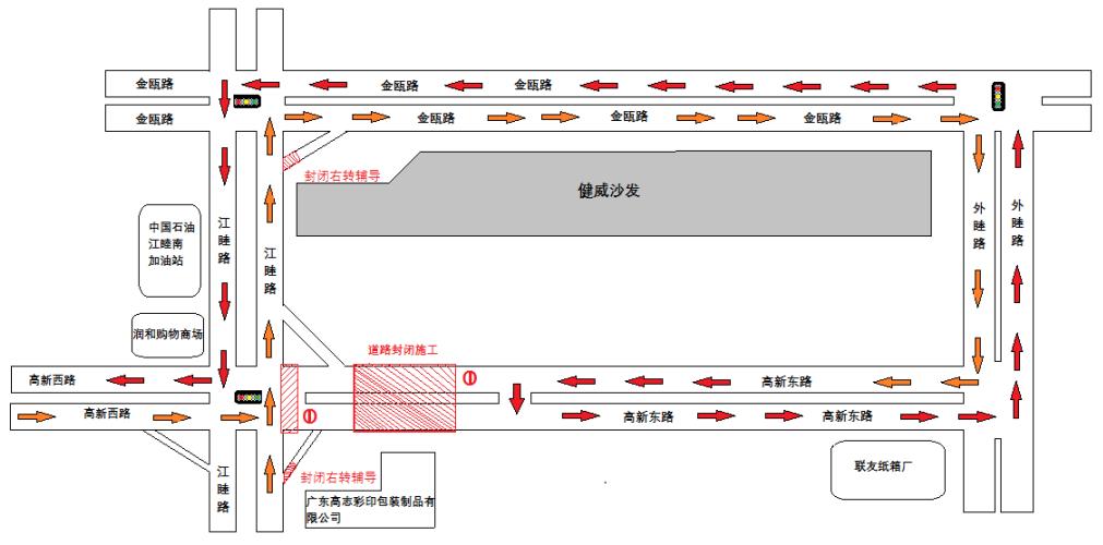 (四)封闭江睦路(朝南)转向高新东路右转辅道,改为绕道金瓯路。
