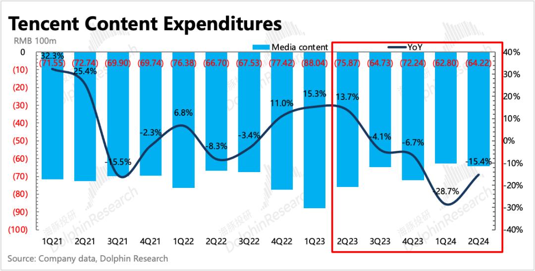 这也是腾讯视频选择不断优化项目投资,专注于ROI方向转变的主要原因。近年来,腾讯媒体内容成本持续下降,第二季度仍同比下降15%,也体现了目前“专而精”的内容投资理念。