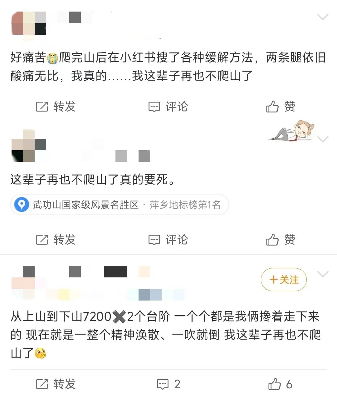 但是,既然有人能用毅力吸引大山,自然会有人被大山狠狠教育。从山上“逃”下来后,他们会留下“这辈子再也不会爬山了”的毒誓。