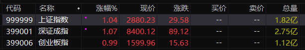 午评:上证指数和深成指均涨幅超过1%,两市半日成交额近4000亿元。