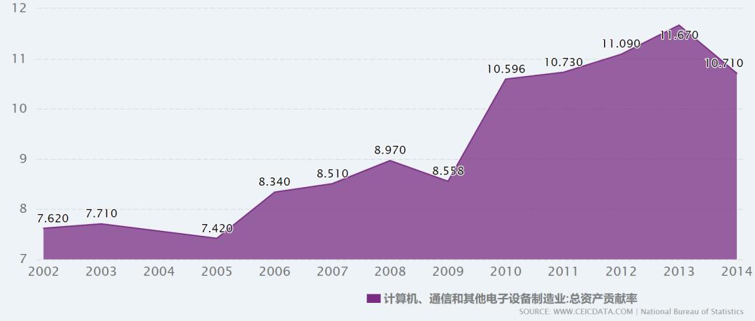 中国计算机、通信等电子产品制造业:总资产贡献率信息来源:国家统计局