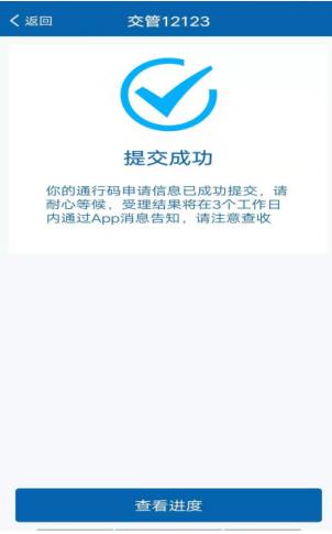 第四步:查看申请信息后,点击“提交”,待审核。如果审批成功,可以在“城市货车通行码”页面查看通行码。
