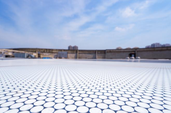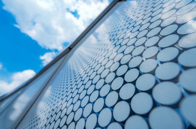 购物中心的屋顶贴有特殊的纳米金属材料膜。