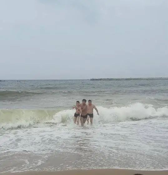 柳忠鹏:当时我带着女儿在沙滩上踩水。我没有听到前几个呼救的声音,然后几个呼救的声音很大。我赶紧把女儿推给老婆往海里看。我看到海上有两个头,一个在上面,一个在下面。情况相当危险。因为海浪不等人,我肯定会给他们拍一张大浪的照片。我什么都没做就跑到了海里。