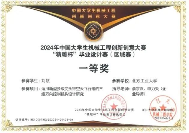 2024年第七届中国大学生机械工程创新创意大赛“雕刻杯”毕业设计大赛决赛在浙江大学成功举行。今年我校首次参加比赛。共有7项毕业作品成功入选北方赛区,在北方赛区区域比赛(含北京、天津、河北高校)的激烈竞争中获得一等奖2项、二等奖1项、三等奖2项。在全国总决赛阶段,我们学校获得了2项优秀作品奖。