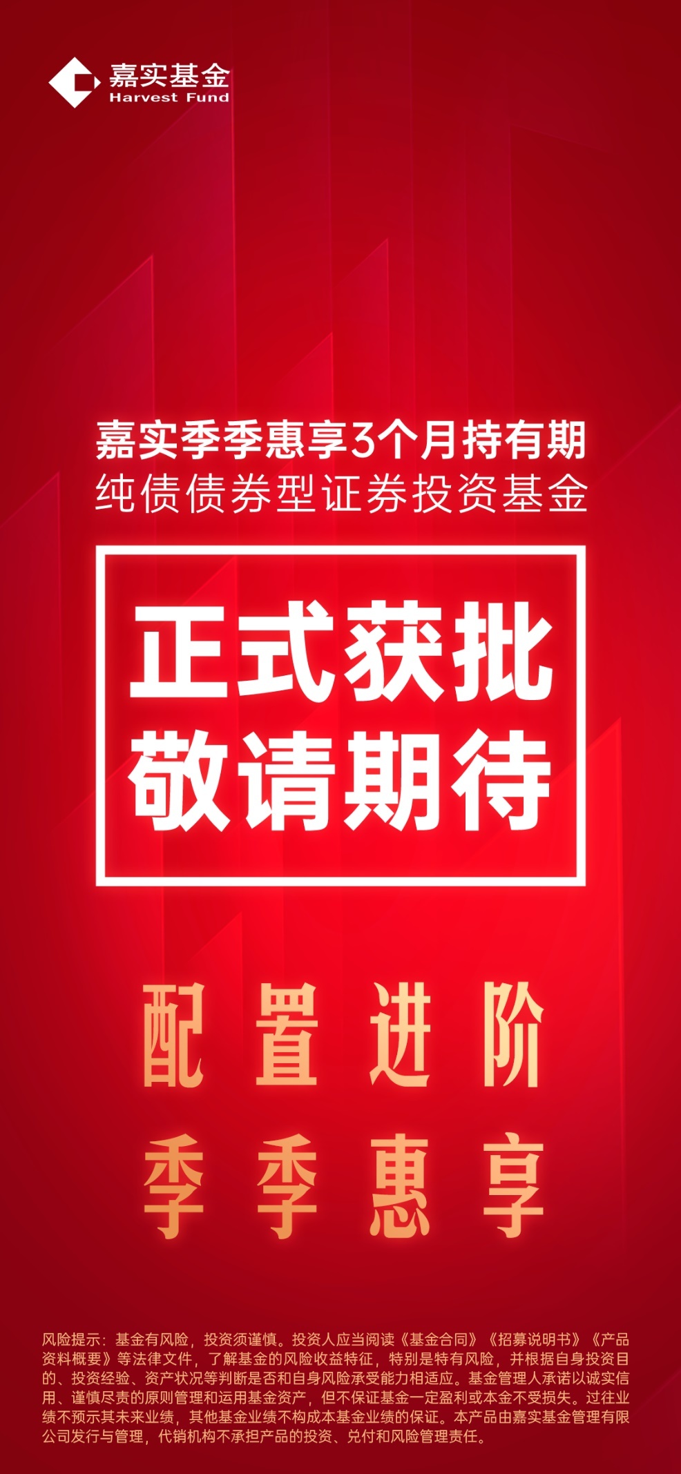 8月13日,嘉实季享3个月持有期纯债券型证券投资基金(以下简称“嘉实季享3个月持有期纯债”)正式获批。该产品有望进一步满足投资者对稳定财务管理的需求。