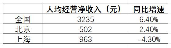 上半年,北京居民人均经营净收入仅为“可怜” 502 人民币,仅为全国平均水平的六分之一