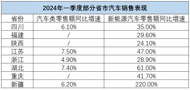 今年第一季度,新能源零售额大幅增长,并在各省经济报告中独立列举。