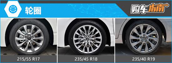 在轮毂方面,新车全系提供 17、18 及 19 三种规格的英尺轮毂。其中,双擎 2.0L 专属版和双引擎 2.5L Limited 旗舰版独享 235/40 R19 轮胎规格;2.0L 进取版、2.0L 臻选版和双引擎 2.0L 真正选择的轮胎规格是 215/55 R17;其它车型都配备了 235/45 R18 轮胎的规格。